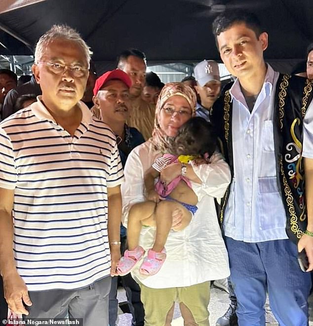 Mr Jimbai told local media: 'It was worth the wait when Sultan Abdullah, Tunku Azizah and their children met up with our family and took pictures with Missclyen.